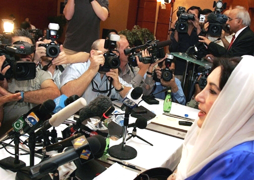 貝•布托表示,她將領(lǐng)導(dǎo)巴基斯坦人民黨為國會選舉作好準(zhǔn)備,希望爭取第3度當(dāng)選總理。巴國警方派出2萬警力保護(hù)她。