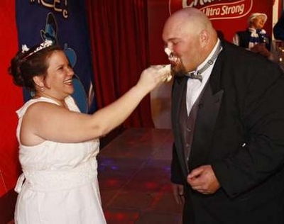新娘穿的潔白婚紗是用數(shù)卷廁紙精制而成,由本年度廁紙結(jié)婚禮服比賽冠軍哈納•金設(shè)計(jì)。廉宜時(shí)髦結(jié)婚公司對(duì)本次婚禮提供了贊助。