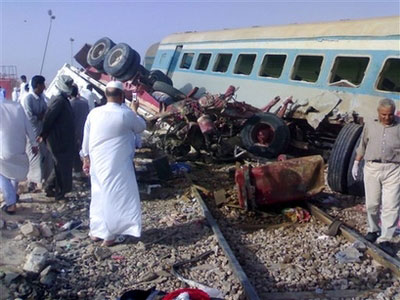 埃及火車與汽車相撞事故現(xiàn)場(chǎng)。