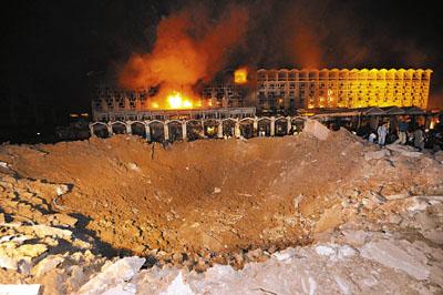 據(jù)香港《文匯報》報道,巴基斯坦新總統(tǒng)扎爾達里剛剛上臺不久,便發(fā)生今次恐怖襲擊。就在爆炸發(fā)生前,他還在距離酒店數(shù)百米的國會首次發(fā)表演講,聲稱必須鏟除恐怖主義。雖然還未有組織承認發(fā)動襲擊,但估計與新政府決心繼承前總統(tǒng)穆沙拉夫的親美路線不無關系。