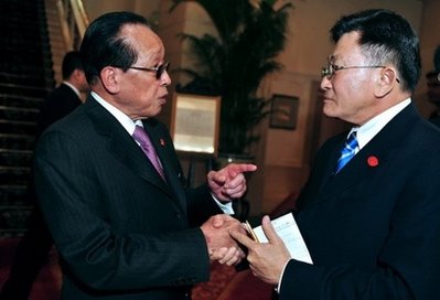 柬外長(zhǎng)賀南洪(左)和泰國(guó)外長(zhǎng)頌蓬在北京亞歐峰會(huì)場(chǎng)