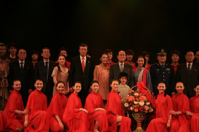 中新網(wǎng)10月27日電 中國(guó)駐朝鮮大使館網(wǎng)站消息,10月25日晚,朝鮮東平壤大劇場(chǎng)內(nèi)座無(wú)虛席,中國(guó)人民解放軍空軍政治部文工團(tuán)大型現(xiàn)代舞劇《紅梅贊》在這里隆重上演。朝鮮最高人民會(huì)議常任委員會(huì)委員長(zhǎng)金永南、內(nèi)閣總理金英日、人民武力部部長(zhǎng)金鎰?wù)艽螏、最高人民?huì)議議長(zhǎng)崔泰福、最高人民會(huì)議常任委員會(huì)副委員長(zhǎng)楊亨燮、黨中央書記金己男、最高人民會(huì)議常任委員會(huì)秘書長(zhǎng)崔永林、人民軍總政治局第一副局長(zhǎng)金正閣大將、最高人民會(huì)議常任委員會(huì)副委員長(zhǎng)金英大、內(nèi)閣副總理盧斗哲、保健相崔昌植、文化相康能洙等黨政軍領(lǐng)導(dǎo)人及有關(guān)部門負(fù)責(zé)人,中國(guó)駐朝鮮大使劉曉明及使館外交官、各國(guó)駐朝使節(jié)和朝鮮群眾約1500人觀看了演出。