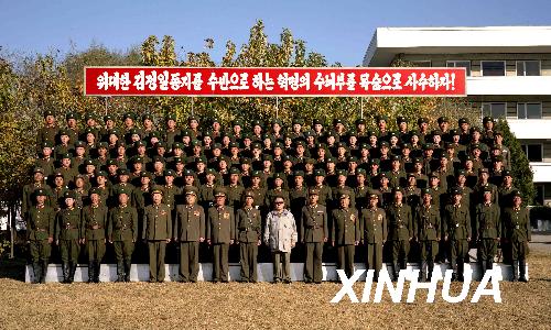 這是金正日與人民軍2200部隊(duì)官兵合影(拍攝日期不詳)。新華社/朝中社
