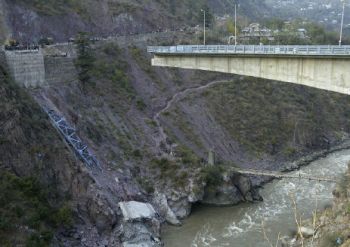 克什米爾橋梁垮塌事故現(xiàn)場。