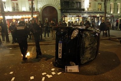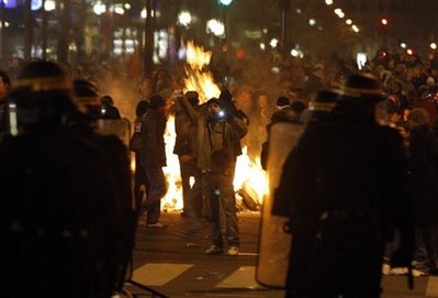 中新網(wǎng)1月30日電 據(jù)香港星島環(huán)球網(wǎng)報(bào)道,法國(guó)全國(guó)有逾百萬人在29日罷工,抗議總統(tǒng)薩科齊處理金融危機(jī)的手法未能令工人受惠。在巴黎,示威演變成騷亂,示威者在商業(yè)大街?jǐn)S玻璃樽和放火,更與警方爆發(fā)推撞,警方施放催淚氣體驅(qū)散群眾。