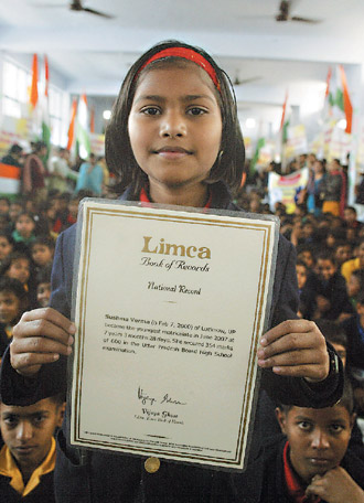 現(xiàn)年9歲的韋瑪(Sushma Verma)目前在北方省首府勒克瑙的圣米拉國際學(xué)院就讀,她2007年參加大學(xué)入學(xué)考試時(shí),只有7歲零3個(gè)月又28天。