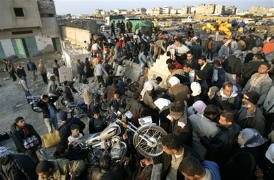 聯(lián)合國表示,拉法邊界門戶洞開后,至少已有70萬加沙的巴勒斯坦民眾,幾乎是當(dāng)?shù)?50萬人口的半數(shù),涌入埃及采購迫切需要的補給品。以色列官員表示,以色列總理奧爾默特與巴勒斯坦領(lǐng)導(dǎo)人阿巴斯將于27日開會討論加沙危機,這是去年11月和平會談恢復(fù)之后,一連串例行會談的最新一場。