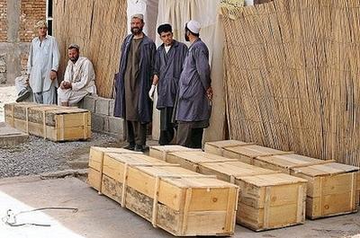 阿富汗醫(yī)務人員站在三名遇難女性的靈柩旁邊。