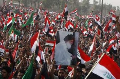 示威者響應(yīng)什葉派政治人物薩德爾的號召,一大早在巴格達東部薩德爾城的穆扎法爾廣場聚集。大部分示威者是年輕人,也有一些婦女和兒童。他們揮舞著伊拉克國旗,手舉薩德爾畫像,高喊“侵略者滾出去!我們不要駐軍地位協(xié)議!”等口號,一直游行到約3公里外的穆斯坦西里亞廣場。