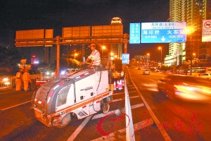 本報(bào)訊(記者倪明、王鶴)從昨日22時(shí)開始,內(nèi)環(huán)路南田路入口至江灣橋南出口,黃埔大道放射線出口段兩處路段約4公里全封閉施工,施工單位將趁著周末和單雙號(hào)限行,交通量相對(duì)較少的機(jī)會(huì)24小時(shí)刨鋪瀝青,爭(zhēng)取在下周一白天重新開放封閉路段。昨晚10時(shí)07分,記者驅(qū)車前往南田路入口,只見電子提示牌上已閃現(xiàn)封閉通知,沿路可見懸掛的車輛繞行指引提示牌。在現(xiàn)場(chǎng)交警的指揮下,交通秩序尚好。交警人士透露,大修啟動(dòng)后,馬上迎來單雙號(hào)演練,對(duì)交通影響不大,但單雙號(hào)演練結(jié)束后,廣州交通將面臨考驗(yàn)。