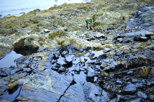 工作人員不斷向海里拋清油氈,一張清油氈可以吸收約70-80斤的石油。清污人員使用的工具主要為清油氈、消油劑和圍油欄。盡管清油氈和消油劑的數量非常大,但與大面積受污染海域相比,還只是一小部分。