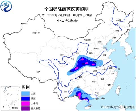 中新網(wǎng)7月23日電 中央氣象臺2010年7月23日06時繼續(xù)發(fā)布暴雨黃色預(yù)警: