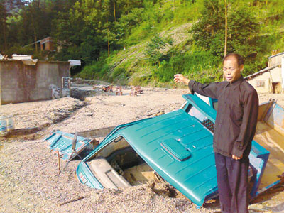 24日凌晨5點多,天麻麻亮,胡仁海聽到山洪聲音好大,就趕緊起來。他看到山洪激起的水浪有十幾丈高。胡仁海擔心大雨滑坡,就把孫子“拉拉”安頓在靠河的房子里。突然,身后一陣巨響,他回頭去看,只見巨大的山洪將靠河的房子連根沖走,他的孫子“拉拉”,嘩啦一下就被洪水沖走了……