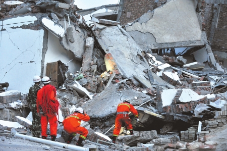 踏著滿地磚頭瓦礫,戰(zhàn)士們穿行在殘?jiān)珨啾谥g,不斷用擴(kuò)音器喊話:“里面還有人嗎?”每喊一句,戰(zhàn)士們便停下身來(lái),生怕自己輕微的腳步,掩蓋了被困者發(fā)出的聲音。
