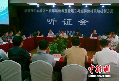 中新網(wǎng)成都8月3日電(記者劉忠俊 實(shí)習(xí)生卿詩杰)3日上午,成都市物價(jià)局就中心城區(qū)出租車運(yùn)價(jià)調(diào)整暨建立與燃料價(jià)格聯(lián)動(dòng)機(jī)制方案舉行聽證會(huì),來自社會(huì)各界的22名聽證代表就出租車調(diào)價(jià)方案展開了激烈討論。多數(shù)代表同意漲價(jià)的聲音讓成都部分市民產(chǎn)生質(zhì)疑。