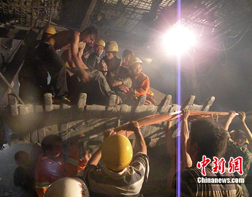 凌晨5時(shí)許,消防官兵抵達(dá)現(xiàn)場(chǎng),發(fā)現(xiàn)隧道施工場(chǎng)地盡頭,幾塊巨大的山石垮塌,將支撐的橫梁壓彎變形,一工人因逃離不及時(shí),左腳被壓在橫梁與山石之間無法動(dòng)彈,加之隧道通風(fēng)不好,山體還有繼續(xù)垮塌的可能,兩臺(tái)重型挖掘機(jī)因支撐山體產(chǎn)生的廢氣十分嗆人,對(duì)開展?fàn)I救十分不利。