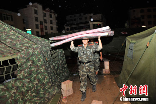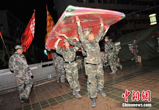 中新網(wǎng)舟曲8月11日電(記者 唐偉杰 劉賢)晚上8點半左右,在數(shù)十分鐘的密集電閃雷鳴后,舟曲災(zāi)區(qū)開始降雨,目前雨勢較小。據(jù)氣象部門預(yù)報,今晚舟曲雷陣雨轉(zhuǎn)中雨,明天預(yù)計繼續(xù)有中雨。