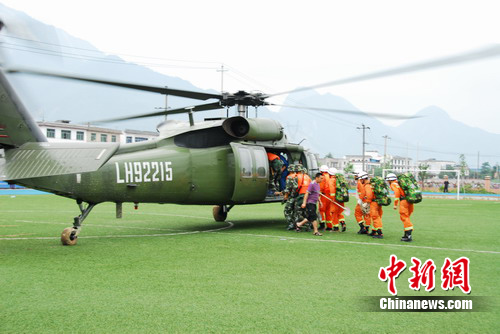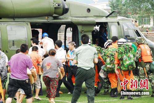 中午12時05分,空軍陸航團(tuán)派出兩架直升飛機(jī)前來支援,深入災(zāi)區(qū)探測道路情況和人員被困情況。從下午1點(diǎn)14時45分至下午4點(diǎn),消防支隊(duì)共派出30人,由參謀長徐昌榮帶隊(duì)分六批次搭乘空軍陸航團(tuán)飛機(jī)帶上破拆工具、生命探測儀、照明工具、水上救援工具、安全救生繩索等已安全到達(dá)清平災(zāi)區(qū)。30名消防官兵到達(dá)災(zāi)區(qū)后,立即設(shè)立了消防部隊(duì)搶險(xiǎn)救援指揮部,指揮一線官兵積極投入救援工作,爭分奪秒營救被困群眾。