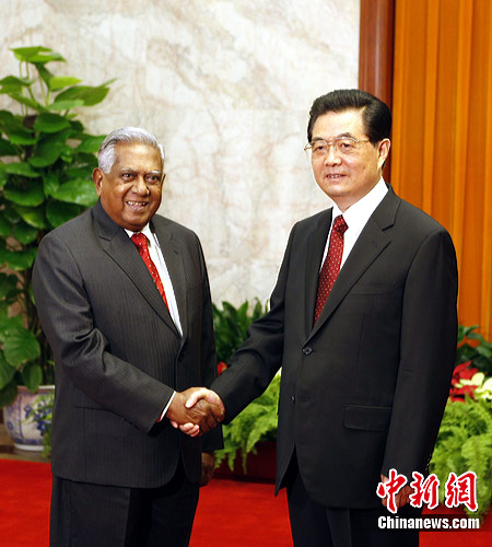 中新網(wǎng)8月18日電 據(jù)中國(guó)外交部網(wǎng)站消息,8月18日下午,國(guó)家主席胡錦濤在人民大會(huì)堂會(huì)見了新加坡總統(tǒng)納丹。