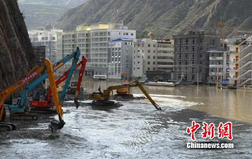 據(jù)了解,隨著瓦廠橋至城江橋長(zhǎng)590米、深7米、寬24米的泄流渠被成功打通后,武警水電部隊(duì)在白龍江左右兩岸同時(shí)施工,加快了作業(yè)進(jìn)度。白龍江8月26日水位與8月8日時(shí)相比已下降3 米多,舟曲縣濱河路的涼亭飛檐完全露出了水面。
