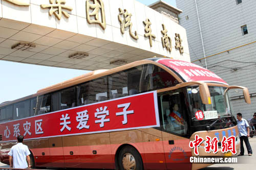 中新網(wǎng)蘭州8月27日電 (記者 張玉璽)27日下午1時許,26輛旅游大巴從蘭州始發(fā),駛往舟曲,準備在28日上午轉(zhuǎn)運首批舟曲異地就學的第一批1000名學生和60名老師到蘭州就學。