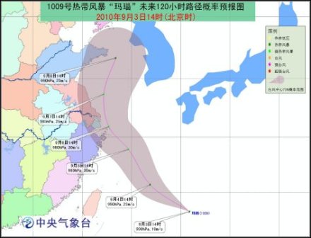 下午14時,其中心在浙江象山東南方大約1135公里的西北太平洋洋面上(北緯23.2度,東經(jīng)130.9度),中心附近最大風(fēng)力有8級(18米/秒),中心氣壓998hPa。