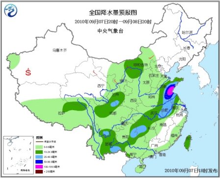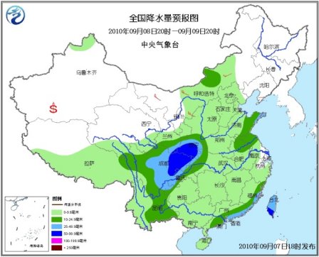 中新網(wǎng)9月7日電 據(jù)中央氣象臺預(yù)報,未來三天,全國降水范圍較大,其中,山東東部和南部、安徽北部、江蘇北部、湖北東部和西南部、湖南北部、四川中東部、重慶大部、云南東部、甘肅東南部、陜西南部、福建中南部、廣東東部及臺灣等地有大雨或暴雨,局部地區(qū)有大暴雨,上述部分地區(qū)并伴有短時雷雨大風(fēng)等強(qiáng)對流天氣。