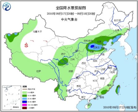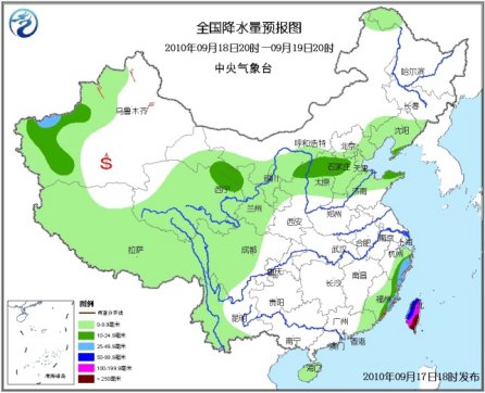 17日20時至18日20時,新疆西部、青海東部、西藏大部、甘肅中東部、寧夏、陜西北部、內(nèi)蒙古中南部、遼寧、吉林南部、華北大部、山東西北部、四川中西部、云南西部、浙江南部、福建東部和南部、臺灣、廣東中東部、海南東部等地有小到中雨或陣雨,其中,山西北部、河北中部和東部、遼寧南部、臺灣東部、新疆南疆西部山區(qū)等地的部分地區(qū)有大雨,局部暴雨;上述地區(qū)局部并伴有短時雷雨大風或冰雹等強對流天氣。新疆南疆中東部、甘肅西部等地有4~6級風,并伴有揚沙或沙塵暴。臺灣以東洋面將有7~9級大風,部分海域的風力將有10~12級,臺風中心經(jīng)過的附近洋面將有13~16級大風;東海南部海域將有6~8級偏東風;臺灣海峽的東北風將由5~6級增加到7~8級;臺灣以南海域將有6~7級偏西或西北風。另外,渤海將有5~7級東北風。