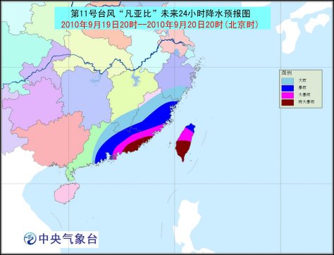 受其影響,未來(lái)24小時(shí),東海南部、臺(tái)灣以東洋面、臺(tái)灣海峽、巴士海峽、巴林塘海峽、南海東北部、浙江南部沿海、臺(tái)灣及其沿海、福建沿海、廣東中東部沿海將有7-9級(jí)大風(fēng),其中福建中南部沿海、廣東東部沿海、臺(tái)灣海峽的部分海面或地區(qū)風(fēng)力可達(dá)10-11級(jí),“凡亞比”中心經(jīng)過(guò)的附近海面或地區(qū)的風(fēng)力有12-13級(jí);福建大部、浙江南部、江西東南部、廣東中東部、臺(tái)灣等地將有大到暴雨,其中福建東南部、廣東東部、臺(tái)灣等地的部分地區(qū)有大暴雨,局地有特大暴雨。中央氣象臺(tái)已于今日18時(shí)發(fā)布了暴雨藍(lán)色預(yù)警。