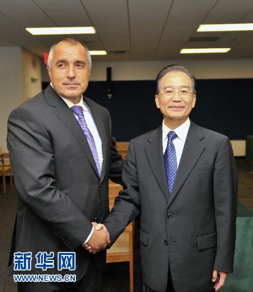 中國(guó)國(guó)務(wù)院總理溫家寶當(dāng)?shù)貢r(shí)間23日在紐約會(huì)見了保加利亞總理博里索夫。