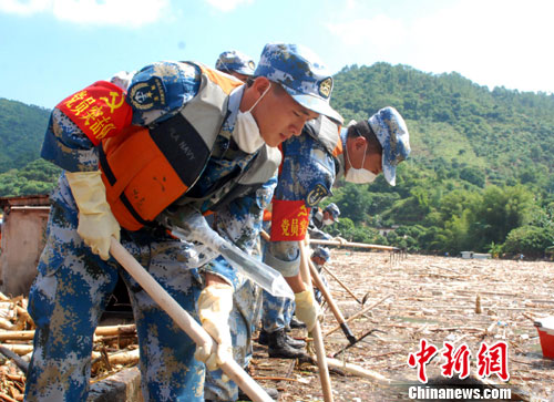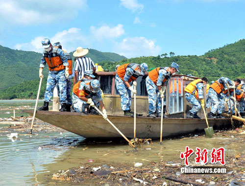從昨夜開始,前期到達(dá)的部分官兵及工程車輛在高州重災(zāi)區(qū)馬貴鎮(zhèn),疏通道路、搜索失蹤人員、搶救物資;工兵分隊(duì)奔赴信宜市對(duì)危險(xiǎn)山體進(jìn)行爆破,部分陸戰(zhàn)隊(duì)員對(duì)廣東省第三大水庫高州水庫水面漂浮物進(jìn)行清理。指揮員張文勝上校告訴筆者,目前工程機(jī)械分隊(duì)連夜打通長約1公里被泥石流堵塞的道路,清污的官兵已打撈起數(shù)十噸水面污染物,工兵分隊(duì)正在對(duì)爆破體進(jìn)行前期論證。 完