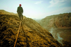 “熄滅”的煤田仍冒濃煙