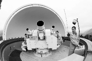 昨日,西昌衛(wèi)星發(fā)射中心指控中心觀測室的技術(shù)人員正在對負責(zé)跟蹤測量衛(wèi)星起飛姿態(tài)的廣電經(jīng)緯儀進行檢測。 秦憲安 攝