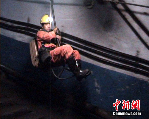 隨后記者跟隨救援隊(duì)進(jìn)入井下,幾名礦工正在沖洗巷道。旁邊就是入井隧道,也是通往井底的唯一道路,救援人員正坐著吊車慢慢滑入深600多米的井底,全力搜救下落不明的礦工。