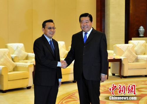 中新網(wǎng)南寧10月19日電(記者 王剛)中國全國政協(xié)主席賈慶林19日在廣西南寧會見前來參加第七屆中國—東盟博覽會和第七屆中國—東盟商務與投資峰會的印尼副總統(tǒng)布迪約諾、老撾副總理阿!诶镆约霸侥细笨偫韽堄乐俚葨|盟國家領導人。