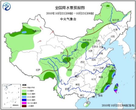 受強冷空氣影響,新疆大部將有5~7級風(fēng),新疆山口及百里風(fēng)區(qū)風(fēng)力可達(dá)8~10級,溫度將下降6~12℃,南疆局部地區(qū)降溫可達(dá)14~18℃,南疆的部分地區(qū)有揚沙或沙塵暴天氣,22~23日,新疆將有小到中雨,局部地區(qū)有大雨或暴雨天氣,新疆沿天山地區(qū)將有中到大雨轉(zhuǎn)中到大雪,局部地區(qū)有暴雪。23~25日,冷空氣繼續(xù)東移,將自西北向東南影響我國大部地區(qū),中東大部地區(qū)將有4~6級偏北風(fēng),溫度將下降6~12℃,局部地區(qū)降溫可達(dá)14~18℃。西北地區(qū)東部、內(nèi)蒙古、華北、東北等地有小到中雨(雪),西北地區(qū)東部偏北地區(qū)、華北北部、內(nèi)蒙古東北部、東北等地的局部地區(qū)有大到暴雪。
