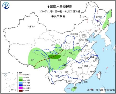 10月31日08時至11月1日08時,新疆南疆盆地西北部、內(nèi)蒙古東北部、黑龍江西北部、西藏南部、青海東南部、甘肅南部、川西高原北部等地有小雨(雪)或雨夾雪;陜西西南部、四川北部等地的部分地區(qū)有小雨或陣雨。內(nèi)蒙古東部、東北地區(qū)等地有4~6級風。臺灣海峽、臺灣以東洋面和以南海域、南海東北部、中部和西南部海域?qū)⒂?~8級、陣風9級的東北風;東海東北部和南部海域、南海西北部海域?qū)⒂?~7級、陣風8級的東北風。
