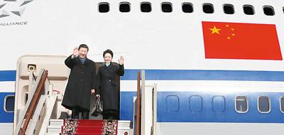 中國國家主席習(xí)近平和夫人彭麗媛首次出訪俄羅斯!⌒氯A社記者 蘭紅光攝