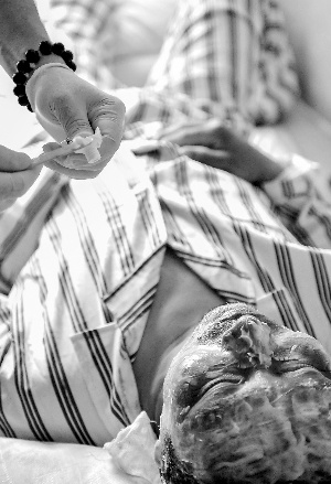 5日,從事故中脫險(xiǎn)的44歲漢子夏維剛躺在市中心醫(yī)院334號(hào)病房?jī)?nèi),灼傷的臉上涂滿藥膏。大火發(fā)生時(shí)夏維剛在安全地帶,返回火場(chǎng)救人時(shí)才被燙傷,他們抬出的工友有30多個(gè)。