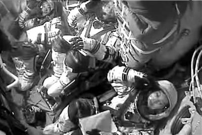 由于失重飄浮,航天員行動(dòng)起來不像在地面上那樣自如,坐立不穩(wěn)搖搖晃晃,稍一抬頭仰身就有可能來個(gè)大翻身,彎腰時(shí)又可能翻筋斗,所以一切動(dòng)作都得小心翼翼。