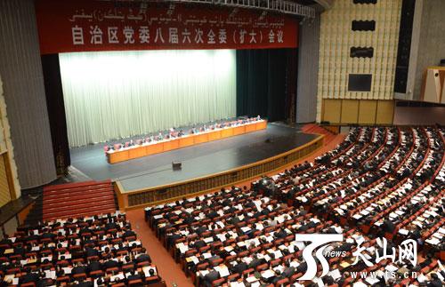 自治區(qū)黨委八屆六次全委(擴(kuò)大)會(huì)議現(xiàn)場(chǎng)。