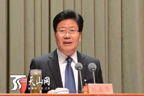 中共中央政治局委員、自治區(qū)黨委書記張春賢在會(huì)上講話。