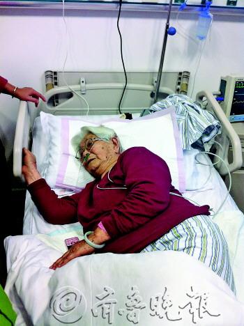 “這兩天她有點累了,讓她早點休息吧!边^了一會兒,薛淑美的老伴便對記者下了“逐客令”。薛淑美閉上眼睛,握著老伴的右手卻沒松開。(記者 張曉鵬 邱曉宇)