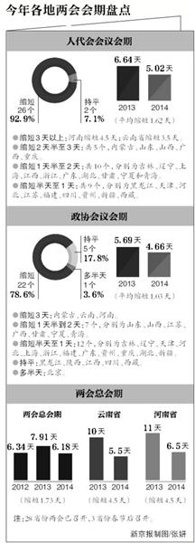 一年一度的省級(jí)地方兩會(huì),近期密集召開(kāi)。截至昨日,全國(guó)31個(gè)省份中,除安徽、海南、湖南將會(huì)期安排在春節(jié)后外,已有13個(gè)省份的兩會(huì)閉幕,15個(gè)正在召開(kāi)。這是2012年年底“八項(xiàng)規(guī)定”出臺(tái)后的第二個(gè)地方兩會(huì)。嚴(yán)規(guī)之下,會(huì)期減短、不擺鮮花、不安排車(chē)輛接送等規(guī)定動(dòng)作得到貫徹落實(shí)。此外,不設(shè)煙灰缸、邀請(qǐng)農(nóng)民工代表旁聽(tīng)等自選動(dòng)作,也在會(huì)場(chǎng)內(nèi)外頻現(xiàn)。專家認(rèn)為,節(jié)儉、務(wù)實(shí)、高效是2014年全國(guó)地方兩會(huì)的新特點(diǎn)。