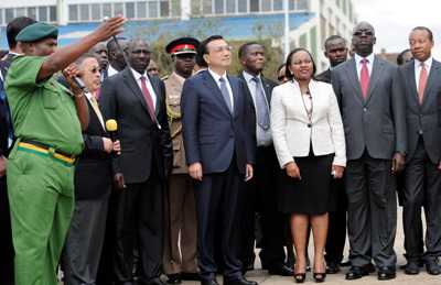 中新網(wǎng)內(nèi)羅畢5月11日電(記者 郭金超) 李克強(qiáng)11日在肯副總統(tǒng)盧托陪同下到國(guó)家青年服務(wù)隊(duì)參觀。這里供學(xué)員實(shí)習(xí)的鉆井、起重、消防等裝備不少來(lái)自中國(guó)。李克強(qiáng)攀上一輛移動(dòng)維修車查看并詢問(wèn)維護(hù)等服務(wù)情況。他說(shuō),要用好中國(guó)裝備和技術(shù)優(yōu)勢(shì),幫助非洲青年提升職業(yè)技能,促當(dāng)?shù)鼐蜆I(yè)。