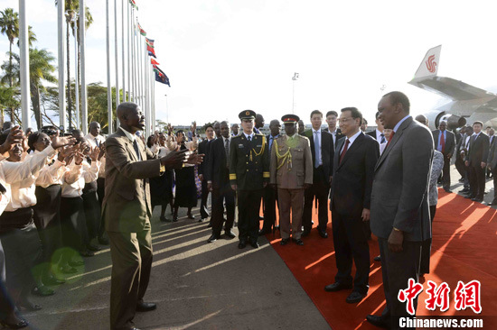 離開肯尼亞時(shí),肯尼亞總統(tǒng)肯雅塔夫婦和副總統(tǒng)魯托到機(jī)場(chǎng)送行,機(jī)場(chǎng)舉行了隆重的歡送儀式。