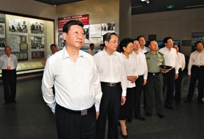 據(jù)黃超介紹,習(xí)近平一行的參觀時間大約為20分鐘,重點參觀了盧溝橋事變沙盤、毛澤東《論持久戰(zhàn)》照片、抗日民主政權(quán)建設(shè)照片等內(nèi)容。
