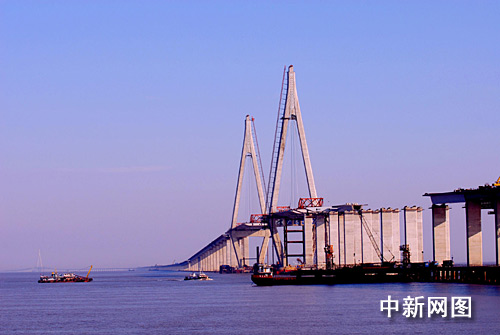 中新網(wǎng)6月26日電 杭州灣跨海大橋?qū)⒂?6日舉行全線貫通儀式,大橋全長36公里,建成后將縮短寧波至上海間的陸路距離120公里,是國道主干線——同三線跨越杭州灣的便捷通道。