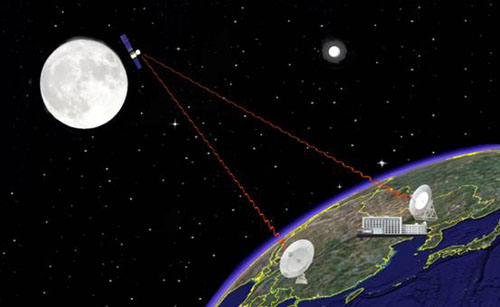 與過去的航天測控任務(wù)不同的是,嫦娥一號衛(wèi)星在遠(yuǎn)距離發(fā)送數(shù)據(jù)的過程中,存在著信號在空間衰減大、信道余量較小、地面接收困難等難題。為確保探測數(shù)據(jù)的可靠接收,由我國專門研制了兩座目前我國口徑最大的分別安裝在北京密云和云南昆明的50米和40米數(shù)據(jù)接收天線,具備了距離40萬公里、碼速率3Mbps的數(shù)據(jù)接收能力。CE-1衛(wèi)星的科學(xué)探測數(shù)據(jù)就是由這兩座接收天線負(fù)責(zé)接收的(圖2)。