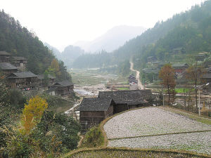這個村幾乎所有人都還住著木頭吊腳樓。他們從山上砍取杉木,涂上桐油,搭建起這種傳統(tǒng)房屋。即使到2005年,村里還有6戶人家屋頂蓋的不是瓦片,而是長滿青苔的杉樹皮。這些因風吹雨打而變成黑色的吊腳樓里,總共只有60臺彩電,16部電話,20部手機,5臺洗衣機。